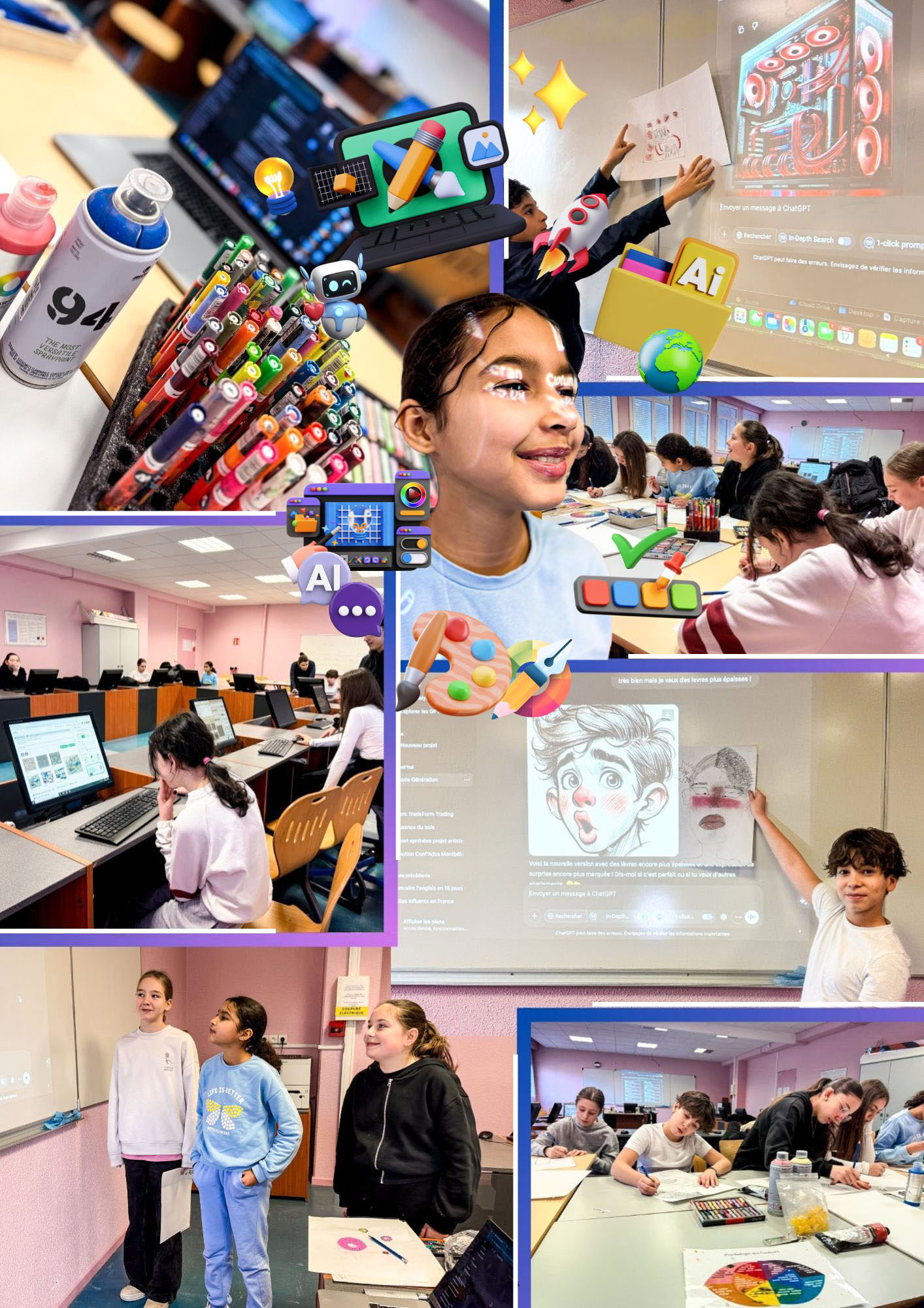 Pensé comme une expérience immersive autour de l’IA et de la création, l’atelier a offert un espace d’expression libre et d’expérimentation à la croisée des beaux-arts traditionnels et des technologies émergentes. Les élèves ont été invités à interroger la place de l’intelligence artificielle dans l’art contemporain, tout en la mettant concrètement au service de leur propre processus créatif.